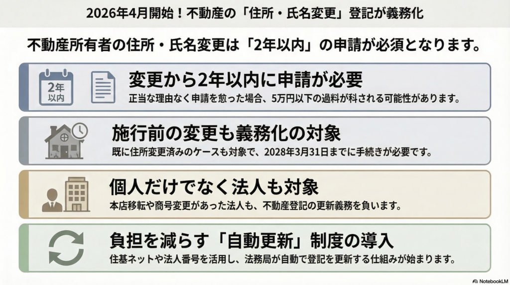 住所や名前が変わったら、登記も変更しましょう|不動産所有者(個人・法人)に義務化、2026(令和8)年4月から