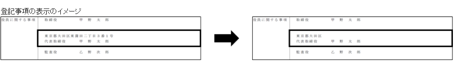 つまり、重任(再任)のタイミングで初めて住所非表示の申出を行っても、それ以前に登記されていた住所は履歴事項全部証明書に残ったままとなります。